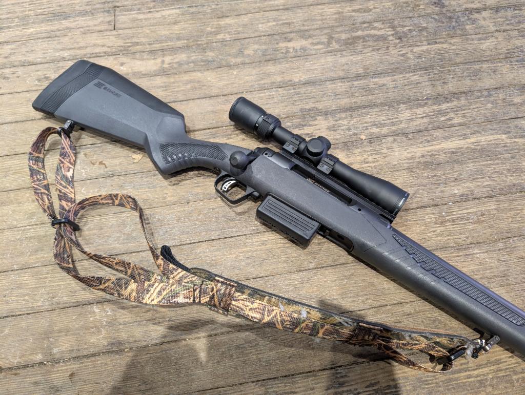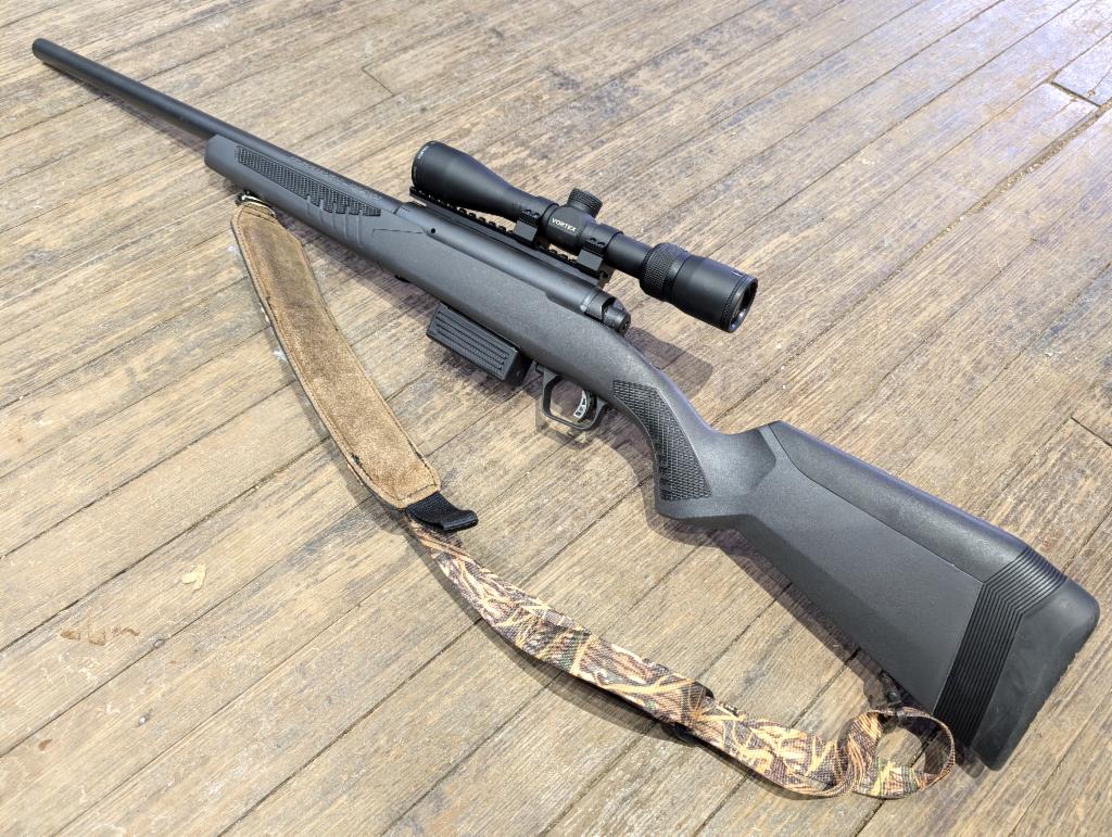 Excellent condition bolt-action slug gun. 22" rifled barrel, sling, synthetic stock, box mag fed, one mag, Vortex 2-7x35 scope.