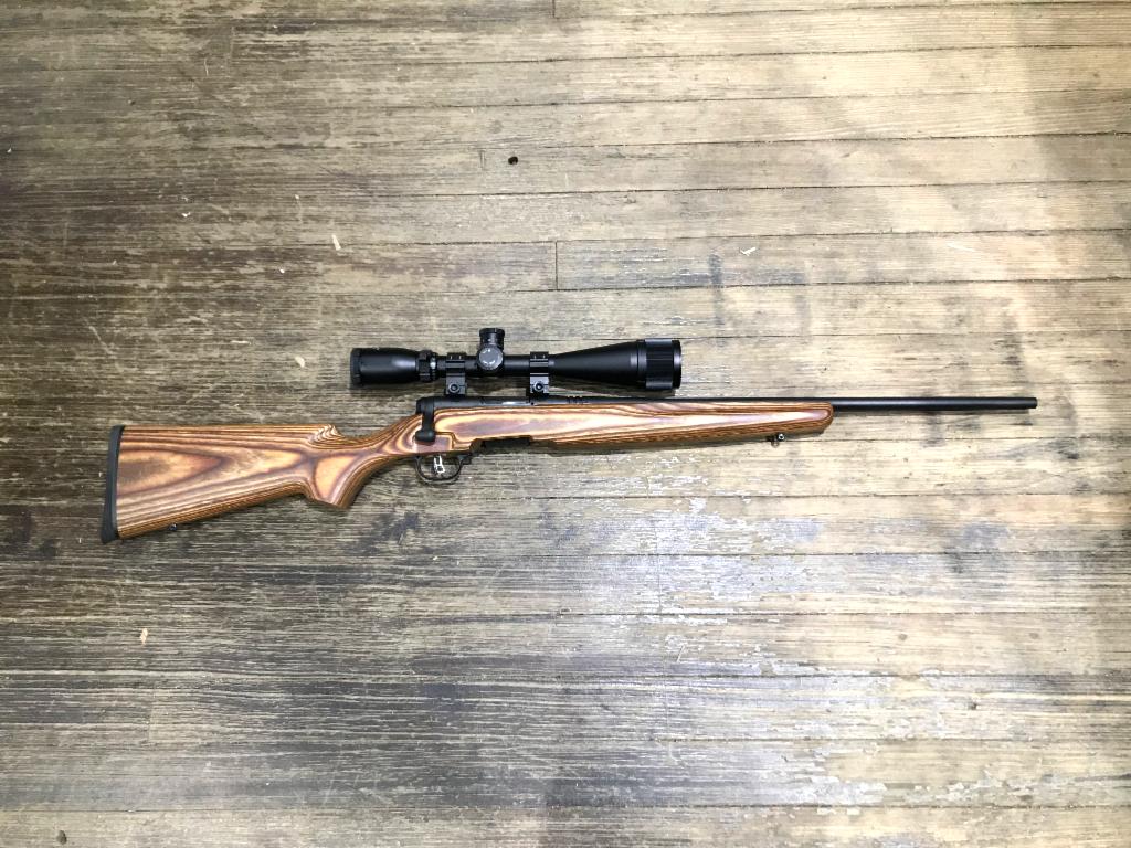 BSA scope, laminate stock, minor freckling. 22" barrel, one mag.