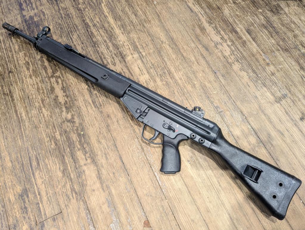 Like new in original box. HK date code (1979). Includes shipping box with Braverman address, indicating that this gun was originally sold locally. Styrofoam insert also present in good condition. Gun is exceptionally clean and appears to have only been fired at the factory. Includes factory test target, sling, one magazine.