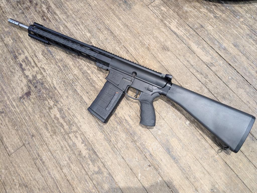 USED Ar10 pattern rifle comes with 1 25rd magazine and 18" barrel and railed upper mlok handguard, extended charging handle