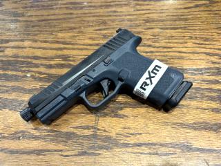 Ruger, RXM, Striker Fired, Semi-automatic, Polymer Frame Pistol, Full Size, 9MM, 4.5" Threaded Barrel, Nitride Finish, Black Slide, Magpul EHG Gray Frame, Optics Ready, Front Night Sight, 15 Rounds, 2 Magpul PMAG GL19 Magazines