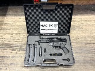 Military Arms Corporation, MAC 5K, Semi-automatic Pistol, 9MM, 5.8" Threaded/Tri Lug Barrel, Matte Finish, Black, 30 Rounds, 2 Magazines, Includes Sling, Flash Hider, and Cleaning Kit